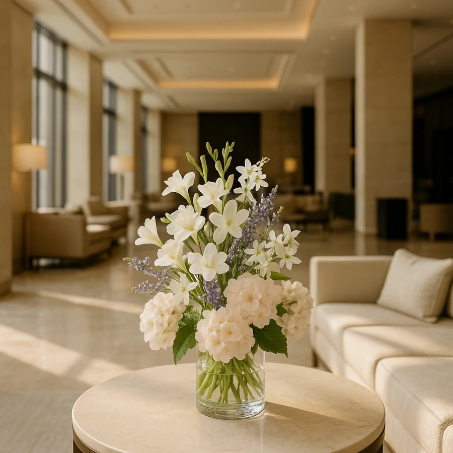 As the fragrance unfolds, a refined floral heart comes forward - a graceful bouquet of freesia, jasmine, lavender, and geranium. Each petal adds a touch of serenity, balanced by a fresh green note that keeps the blend feeling airy, modern, and beautifully composed. The scent settles into a velvety base where earthy vetiver, warm amber, and silky musk linger, leaving a polished finish that feels both timeless and indulgent.